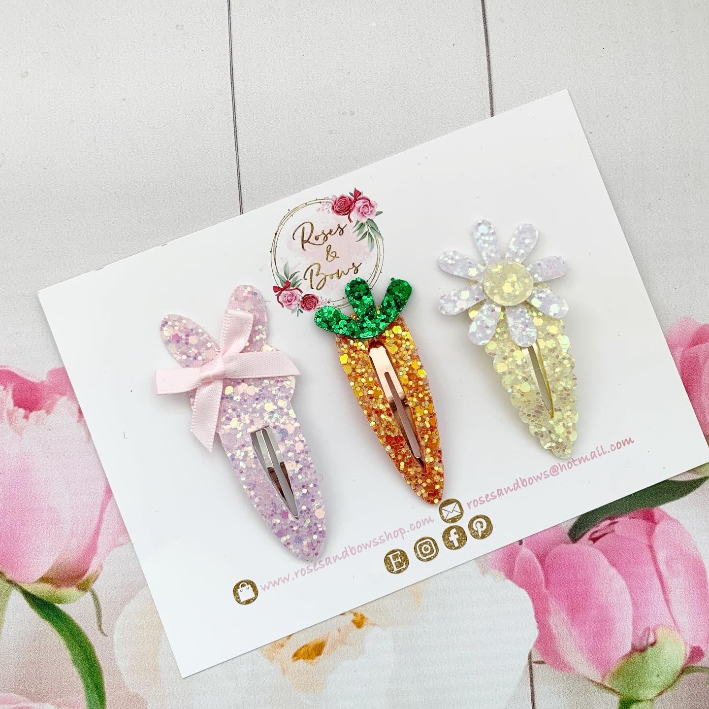 • Load image into Gallery viewer, Easter snap clip set - bunny, carrot and daisy