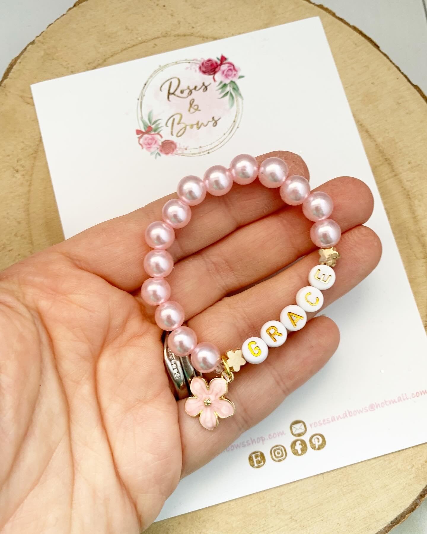 Made with beads, elastic and a metal charm