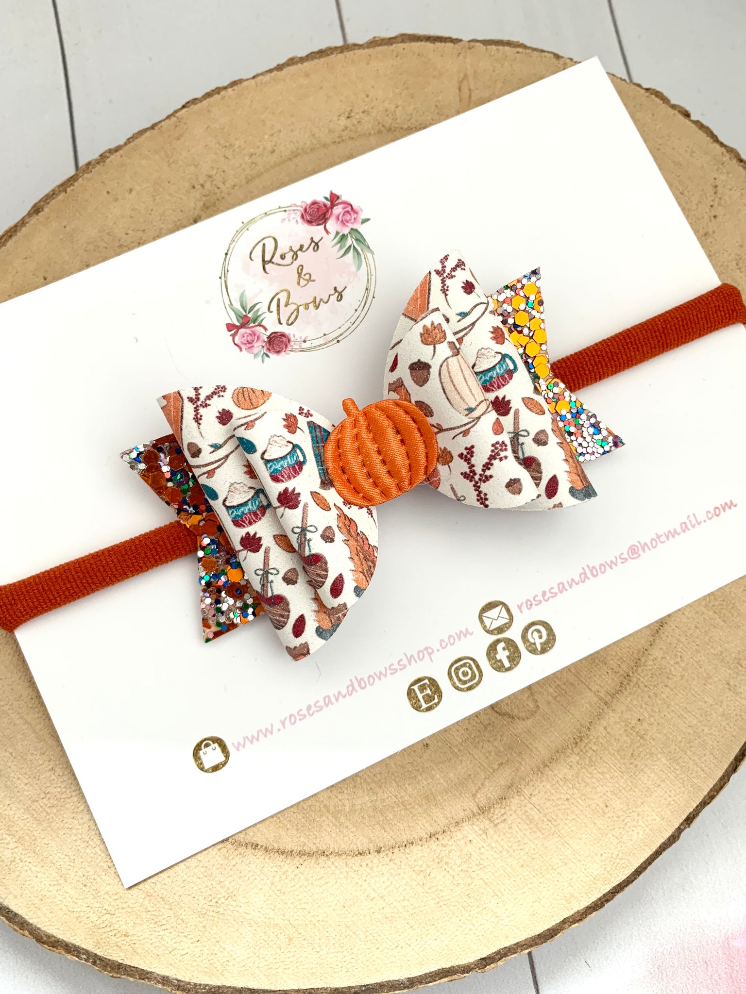 • Load image into Gallery viewer, Pumpkin Hair Bow Headband or Clip