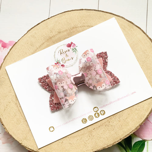 Sleeping Reindeer Crown Hair Bow Headband or Clip