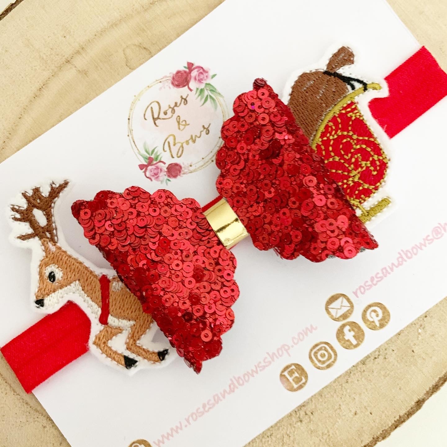 Christmas Sleigh Hair Bow Clip or Headband