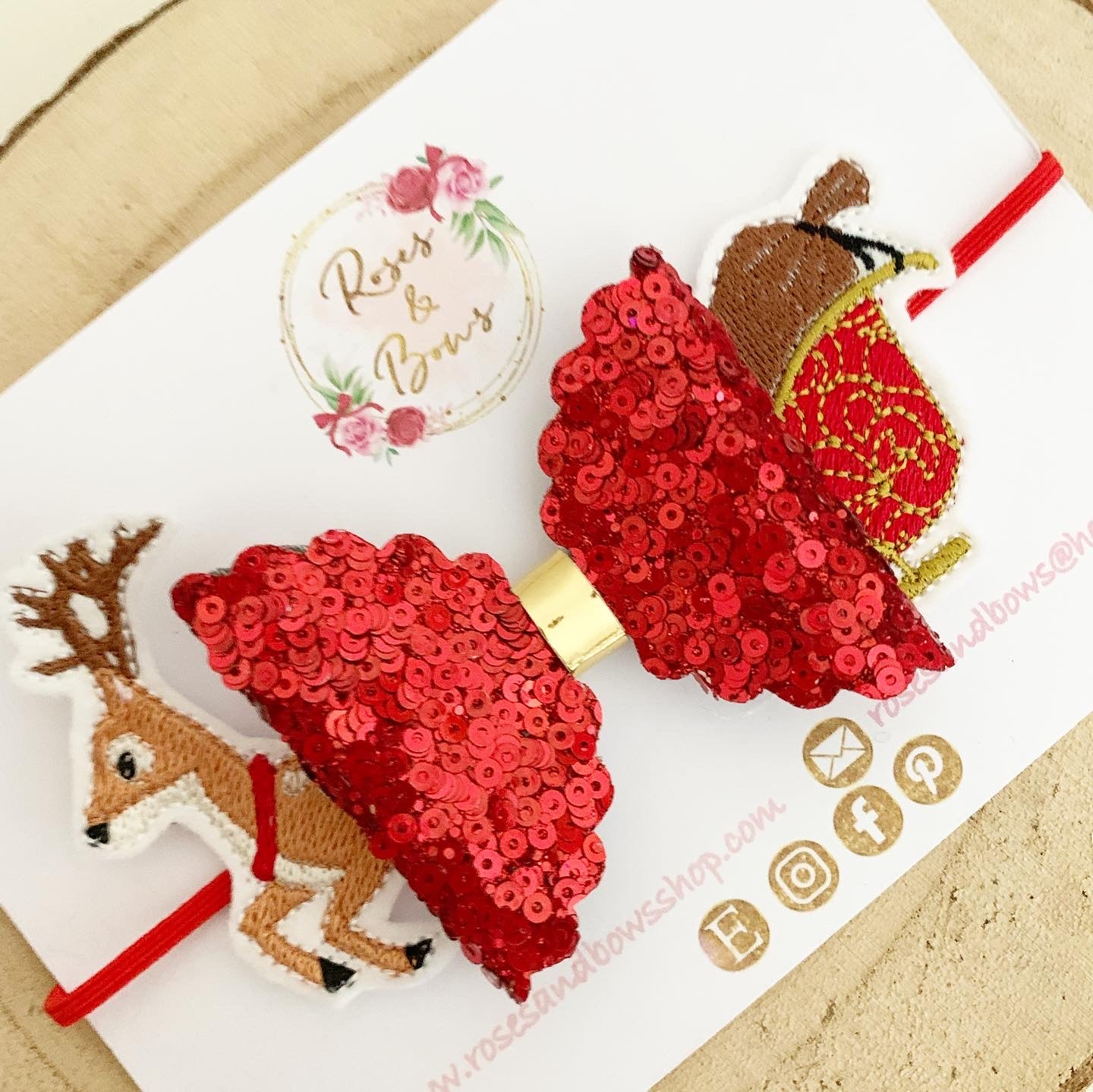 Handmade Christmas Sleigh Glitter Hair Bow