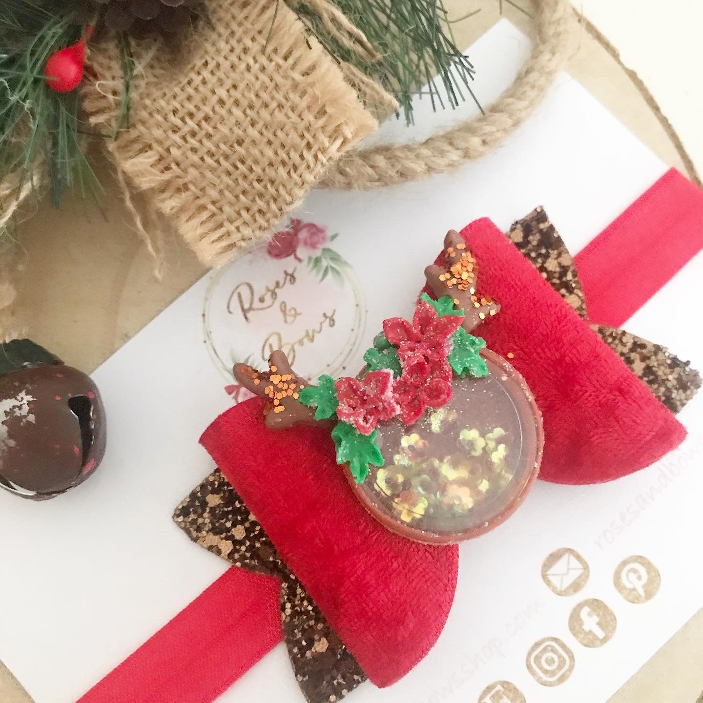 Handmade Reindeer Shaker Hair Bow