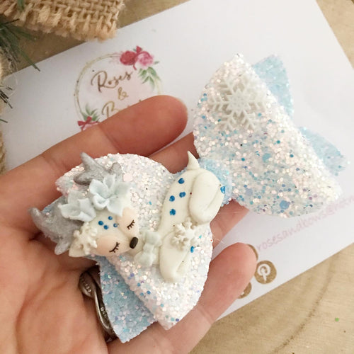Snowflake Reindeer Stag Christmas Hair Bow Headband or Clip