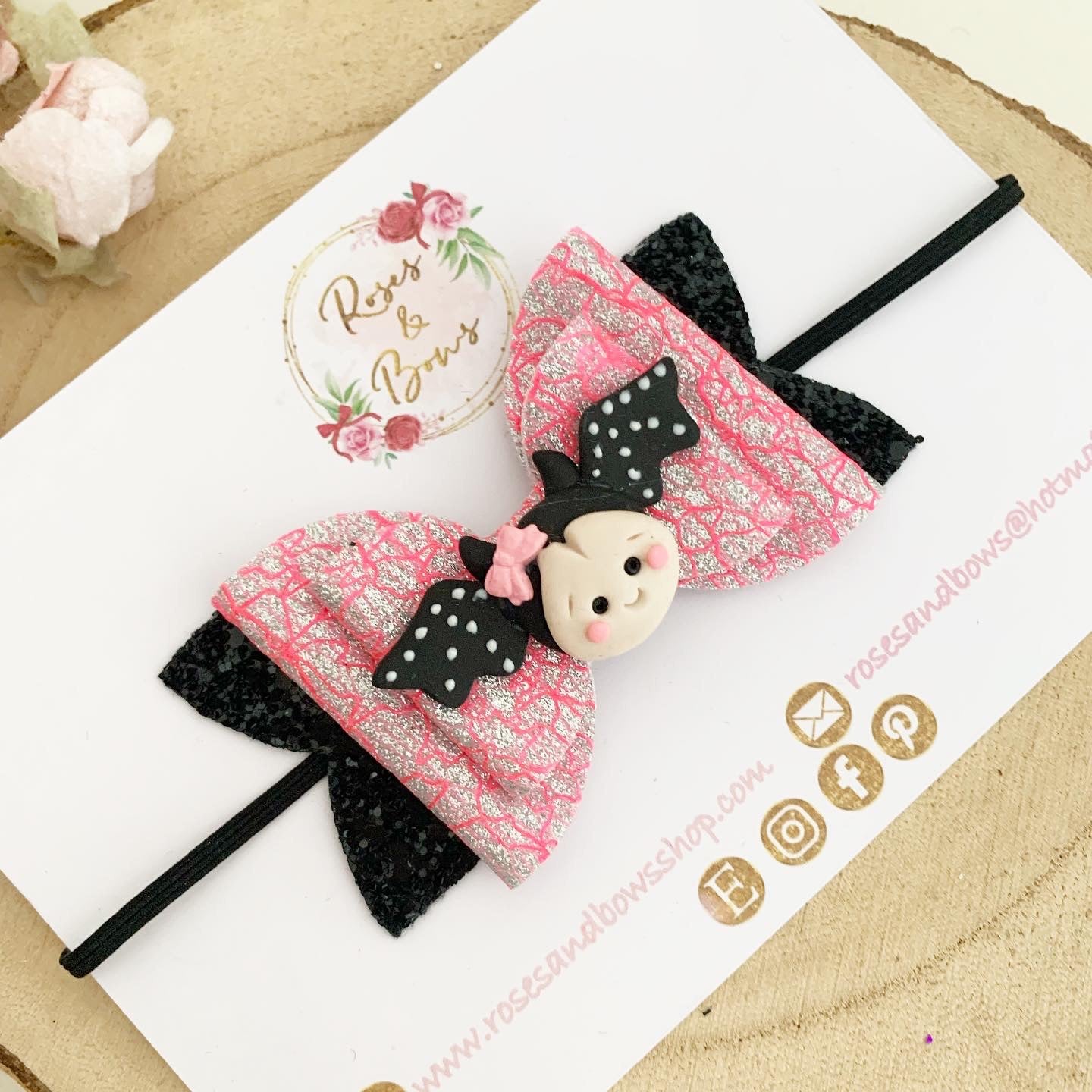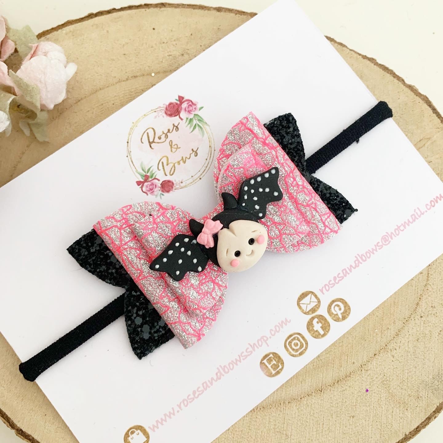 Bat Halloween Glitter Bow Headband or Clip