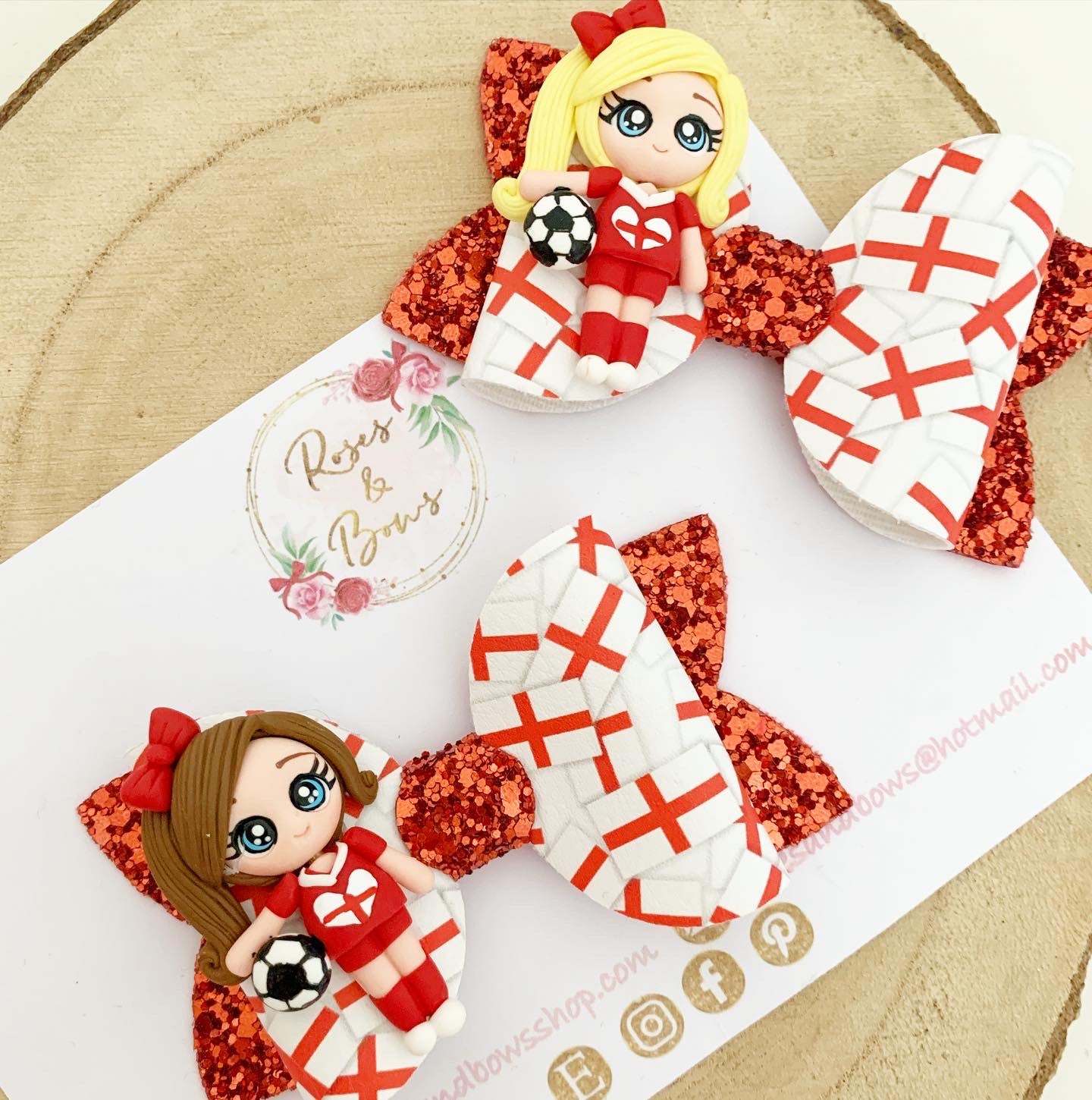 Handmade England football Hair Bow