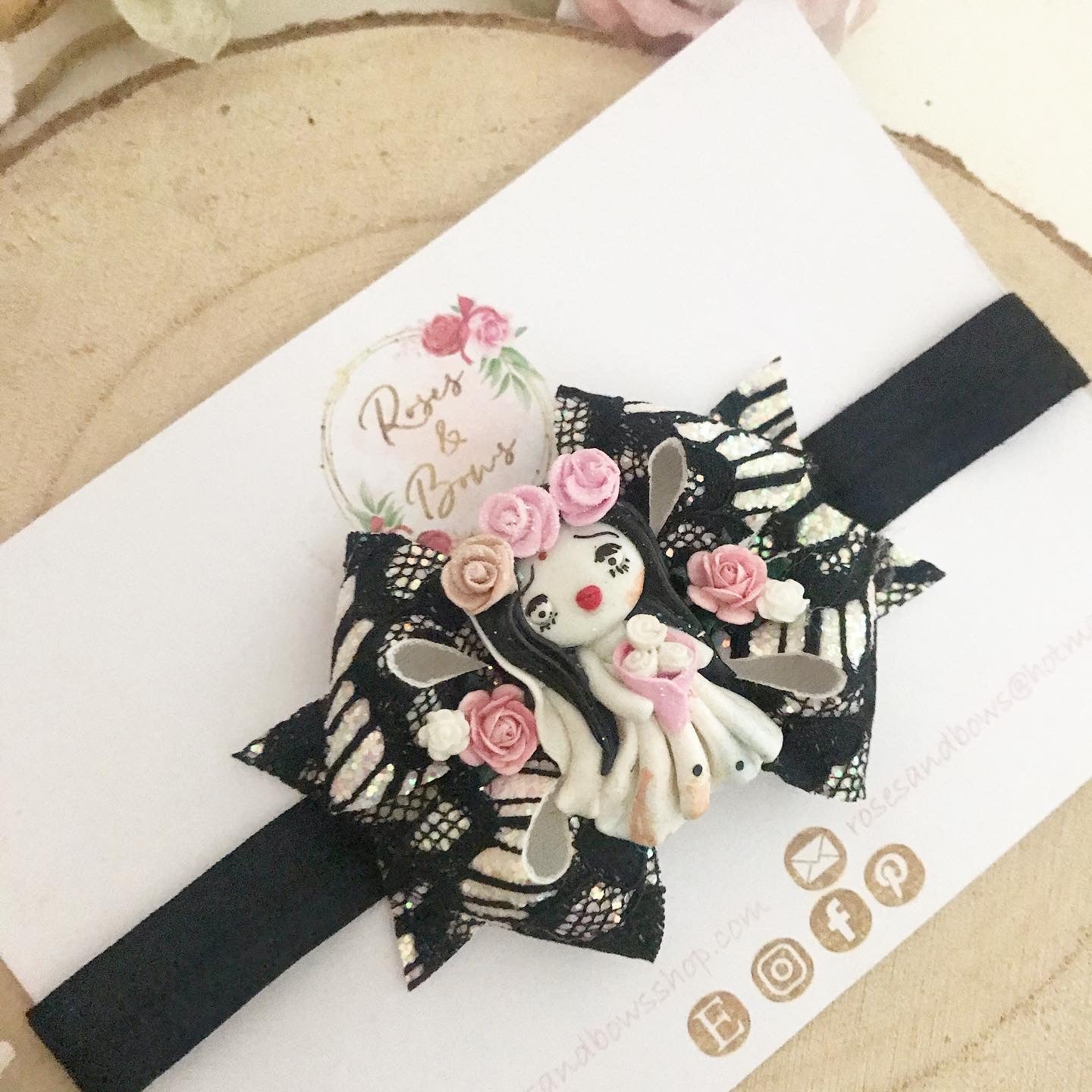 Handmade Halloween Bride Glitter Lace Hair Bow