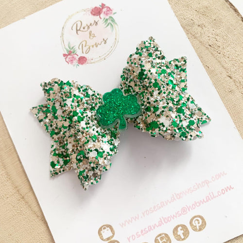St Patrick’s Day Shamrock Hair Bow - Green Glitter Hair Bow Hair Clip or Headband