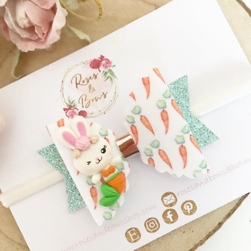 Easter Mermaid Bunny Glitter Hair Bow Hair Clip or Headband