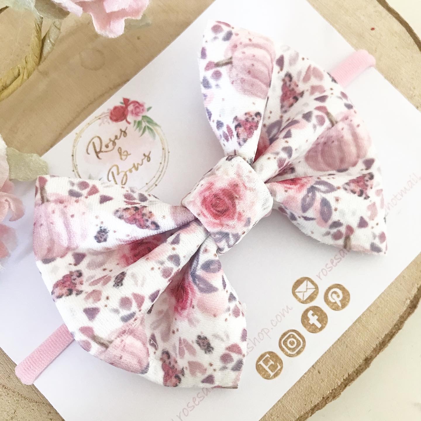 Pink pumpkin Liverpool bullet fabric bow