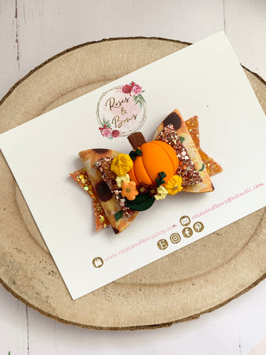 Pumpkin Halloween Glitter Bow Headband or Clip