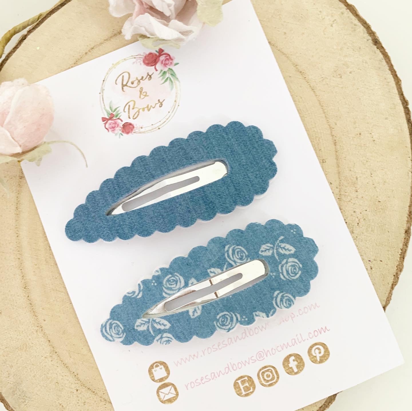 • Load image into Gallery viewer, Light Denim Large scalloped snap clip set