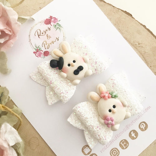 Mr and Mrs Bunny piggy bows - clip set - easter glitter bows