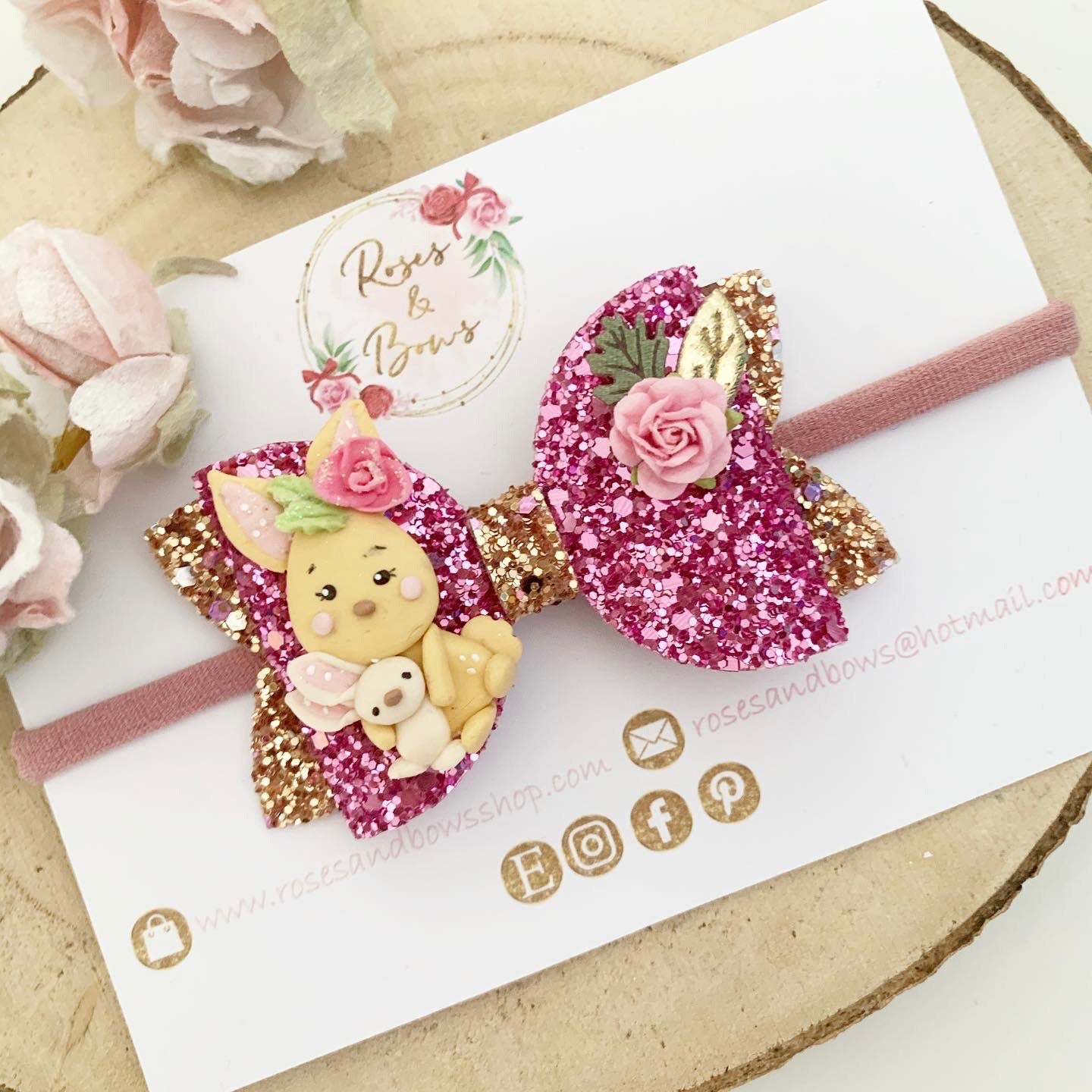 Bunny Gold and Pink Hair Bow Headband or Clip