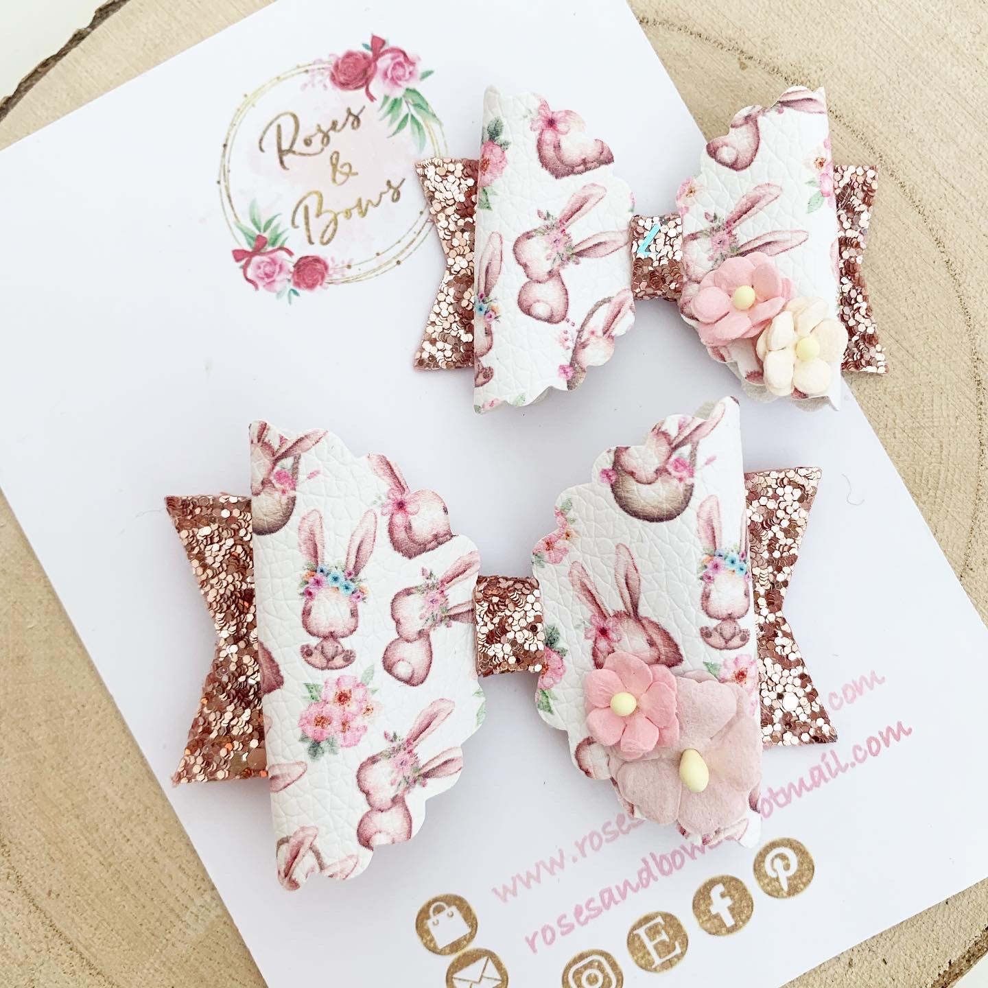 The small bow measures approximately 6cm and the large bow measures approximately 8cm