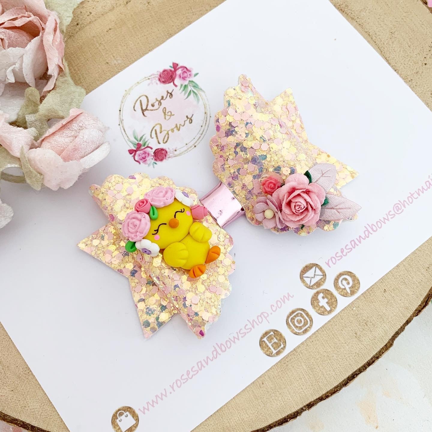 • Load image into Gallery viewer, Easter Chick Hair Bow Headband or Clip