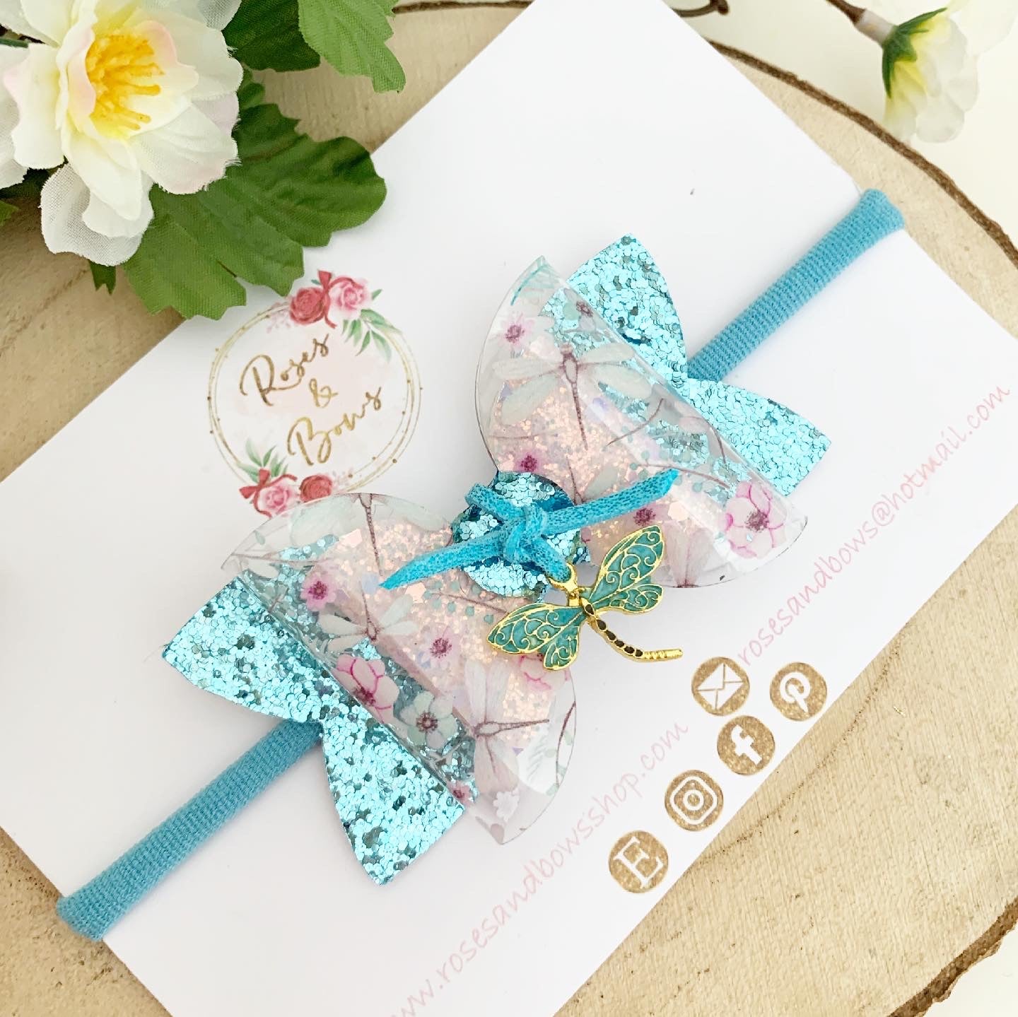 Made with glitter fabric, transparent fabric, faux suede cord and a metal charm.