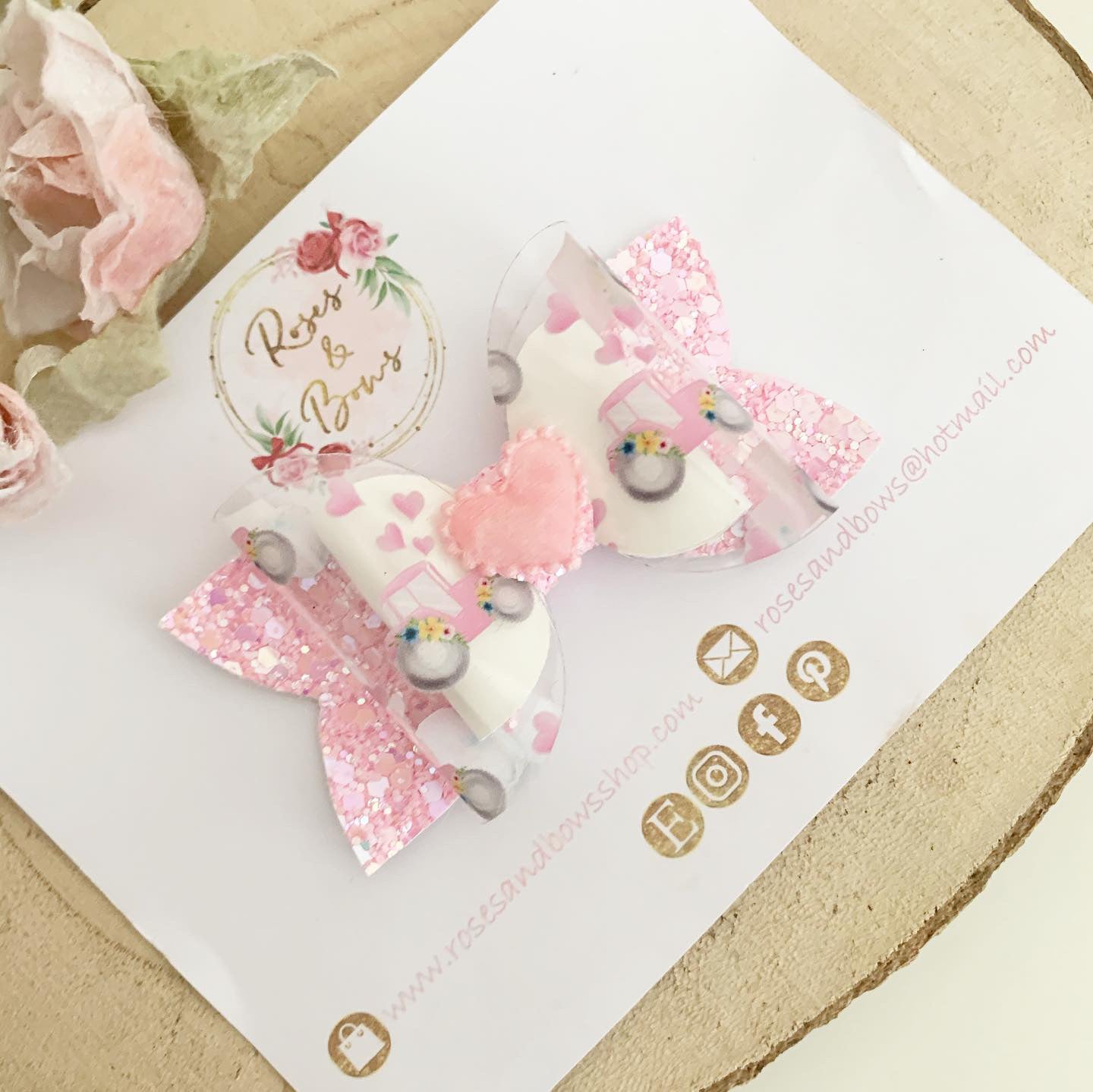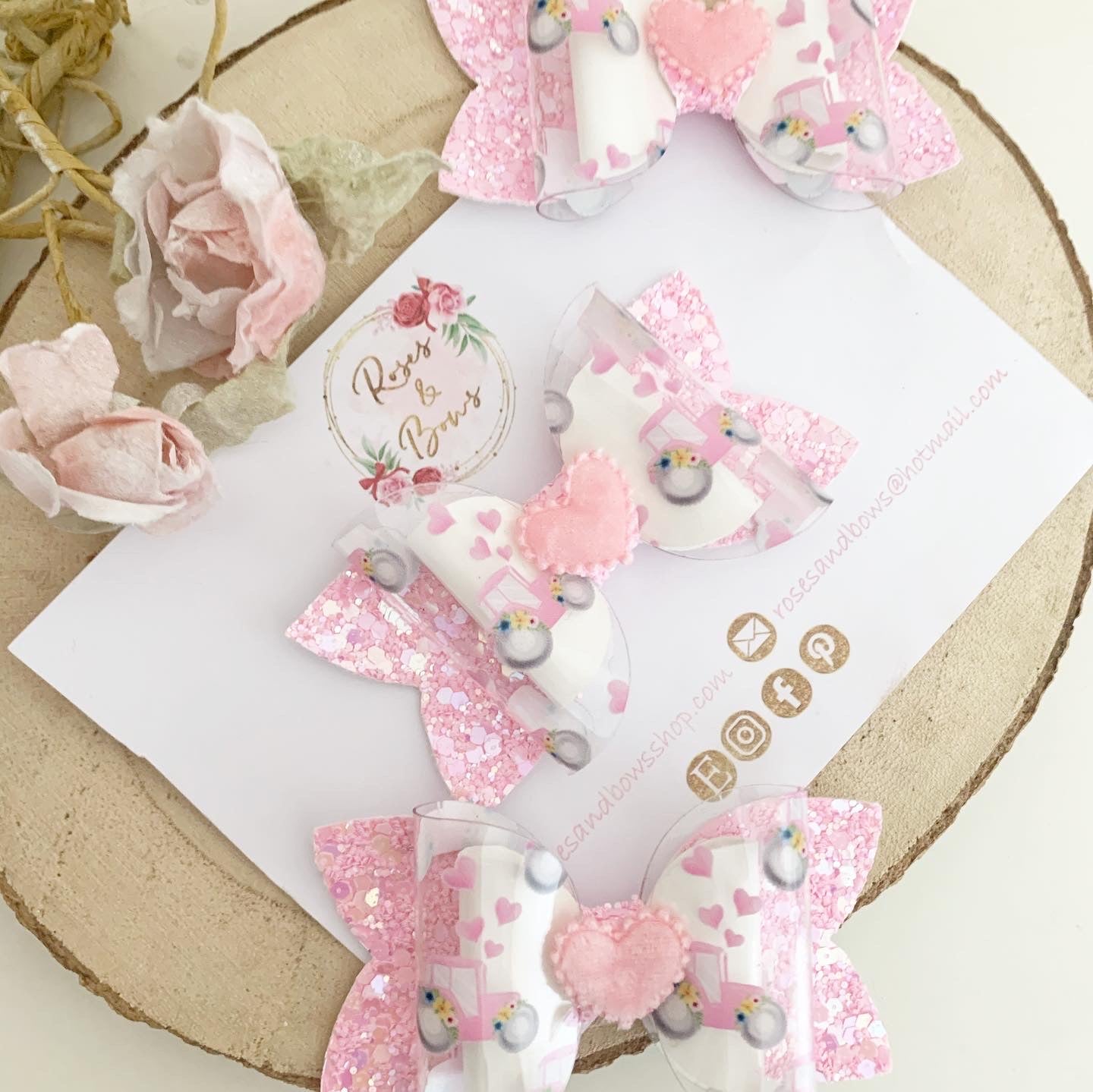 Made with transparent fabric and chunky glitter fabric. Finished with a velvet heart